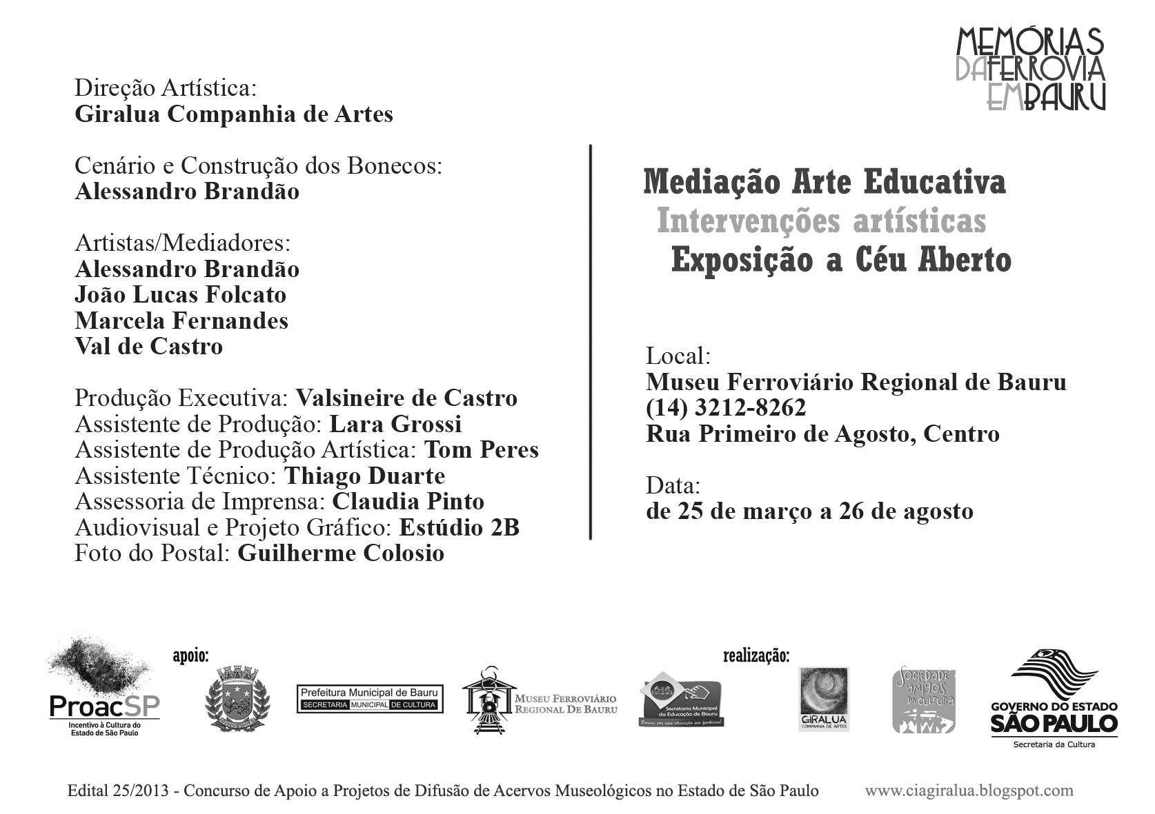 Consistia em uma série de apresentações de teatro resgatando a história da ferrovia na cidade de Bauru.