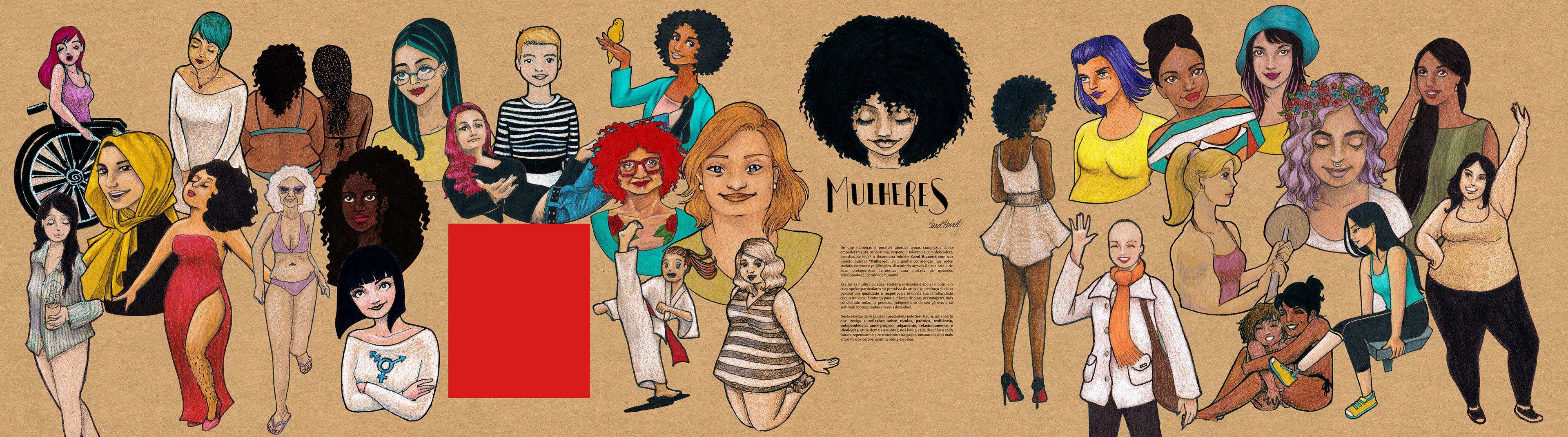 Produção, layout e montagem da ambientação "Mulheres", com ilustrações da artista Carol Rossetti, de outubro a dezembro de 2016 no Sesc Bauru. Adereços (bordados) por Natalia Nogueira.